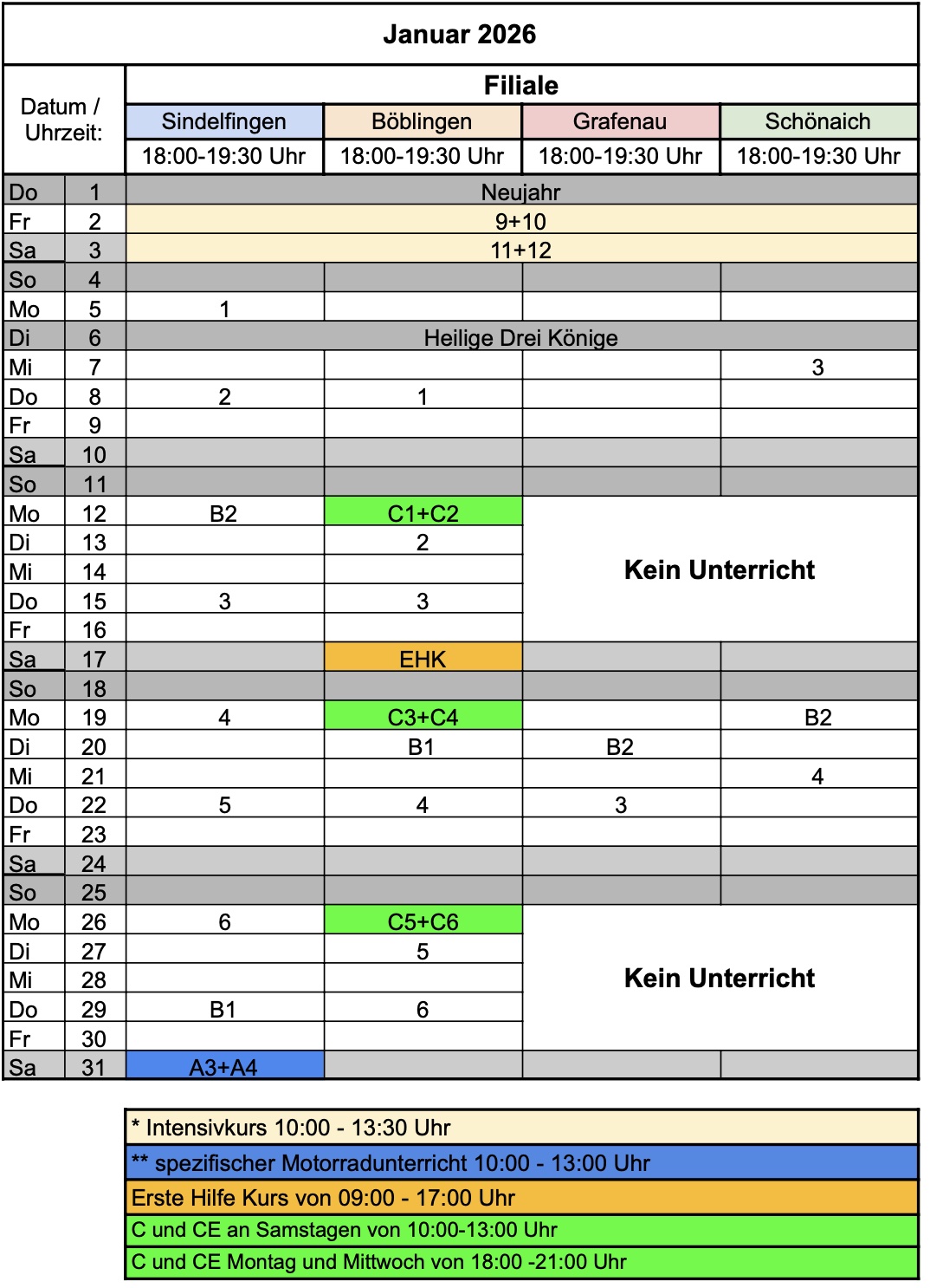 Spezifischer Unterricht: