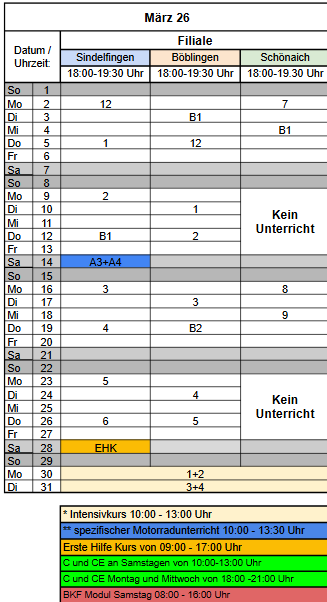 Spezifischer Unterricht: